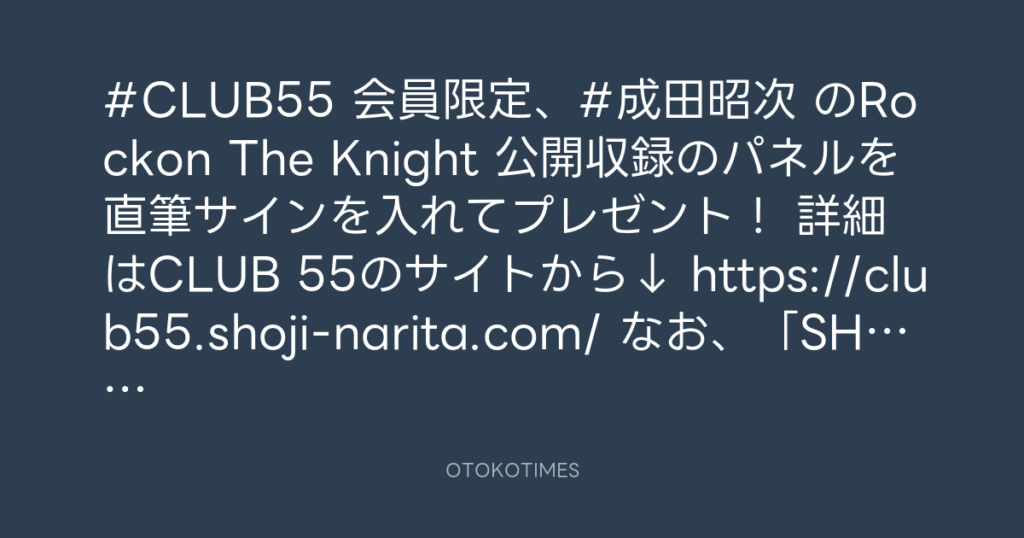 #CLUB55 会員限定、#成田昭次 のRockon The Knight 公開収録のパネルを直筆サイン... -