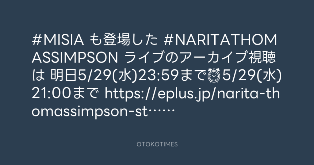 #MISIA も登場した #NARITATHOMASSIMPSON ライブのアーカイブ視聴は 明日5/29(水)2... -