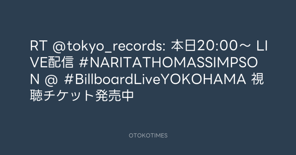 RT @tokyo_records: 📢本日20:00~🎸 LIVE配信📡 #NARITATHOMASSIMPSON @ #Billboa... -