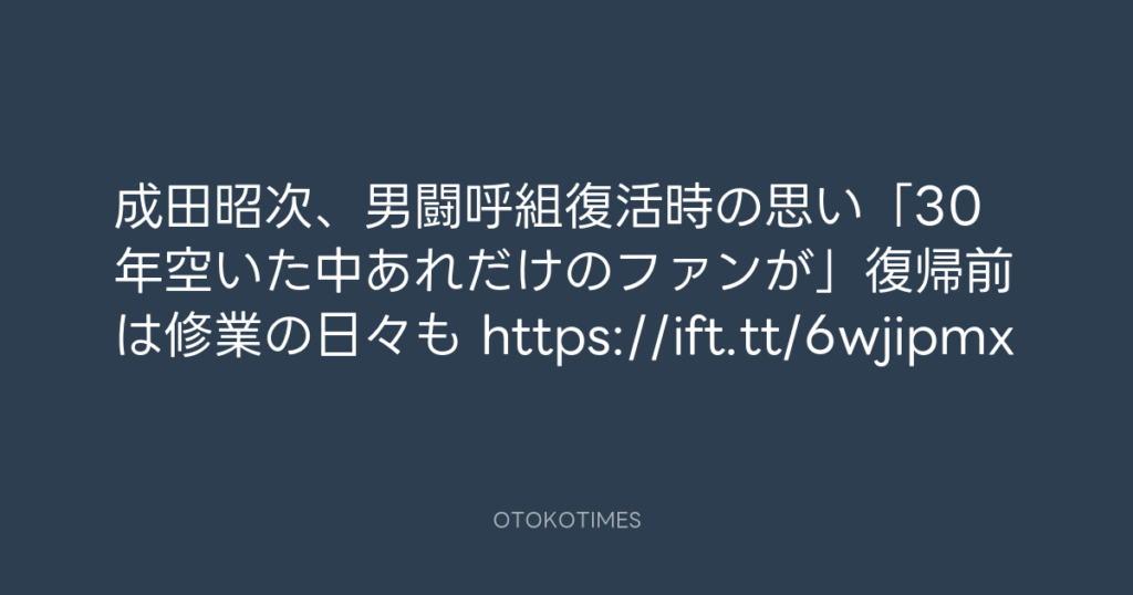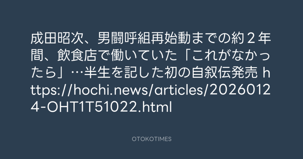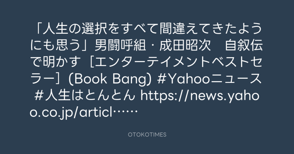 岡本健一 「2回泣いた」成田昭次が自叙伝を発表「人生のバイブルになった」→男闘... -