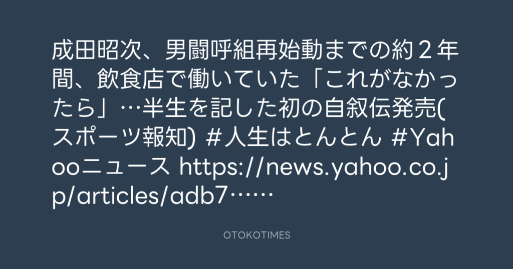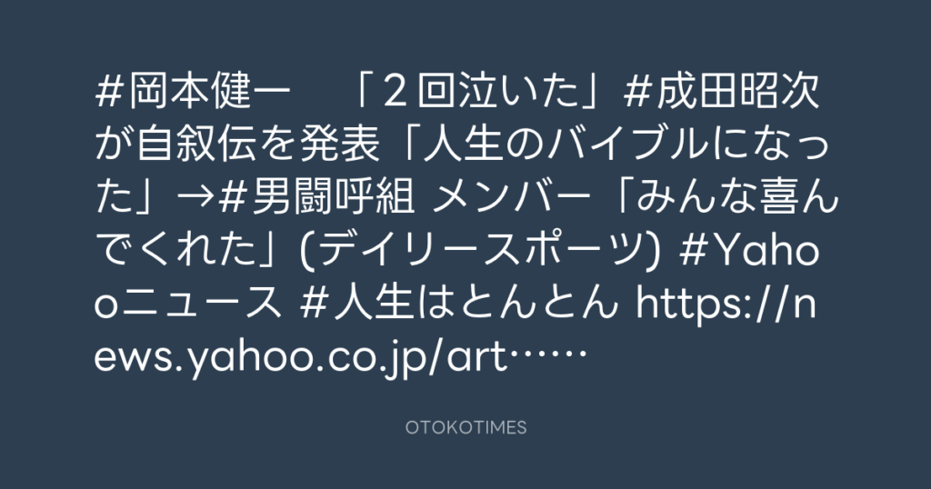 #岡本健一 「2回泣いた」#成田昭次 が自叙伝を発表「人生のバイブルになった」→#... -