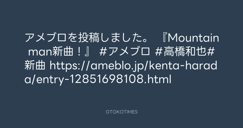 アメブロを投稿しました。 『Mountain man新曲!』 #アメブロ #高橋和也#新曲 http... -