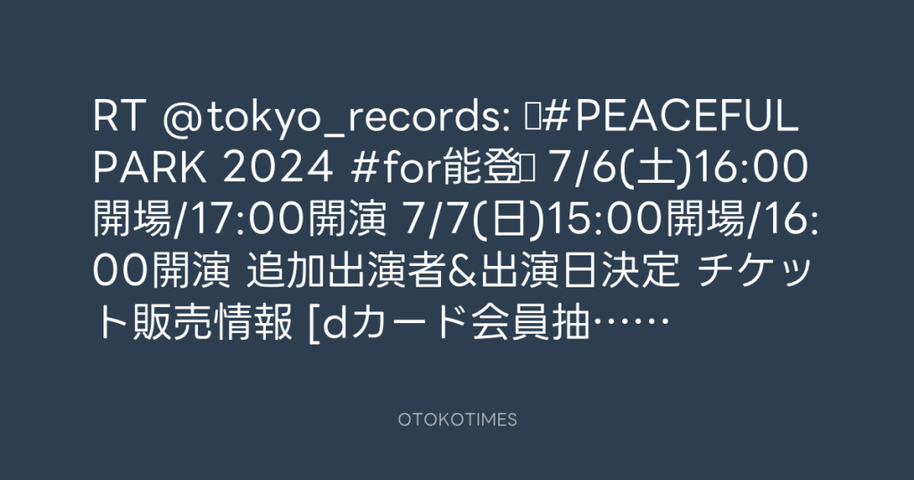 RT @tokyo_records: ◤#PEACEFULPARK 2024 #for能登◢ 7/6(土)16:00開場/17:00開演 7... -