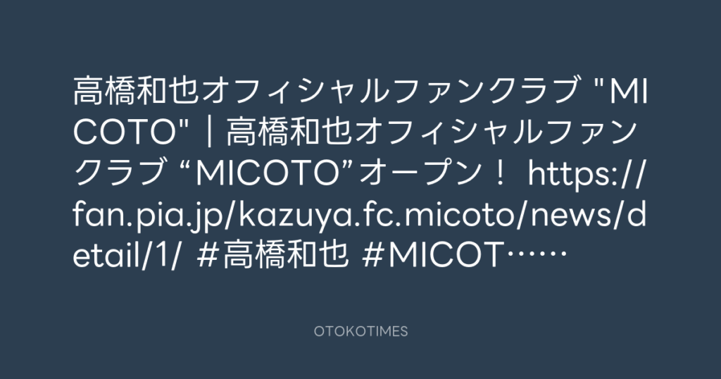 高橋和也オフィシャルファンクラブ "MICOTO"|高橋和也オフィシャルファンクラブ “... -