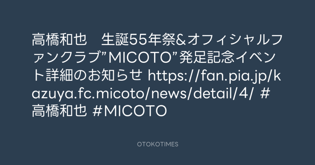 高橋和也 生誕55年祭&オフィシャルファンクラブ”MICOTO”発足記念イベント詳細... -