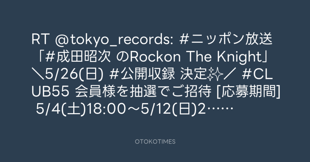 #ニッポン放送📻 「#成田昭次 のRockon The Knight」 \5/26(日) #公開収録 決定✨... -