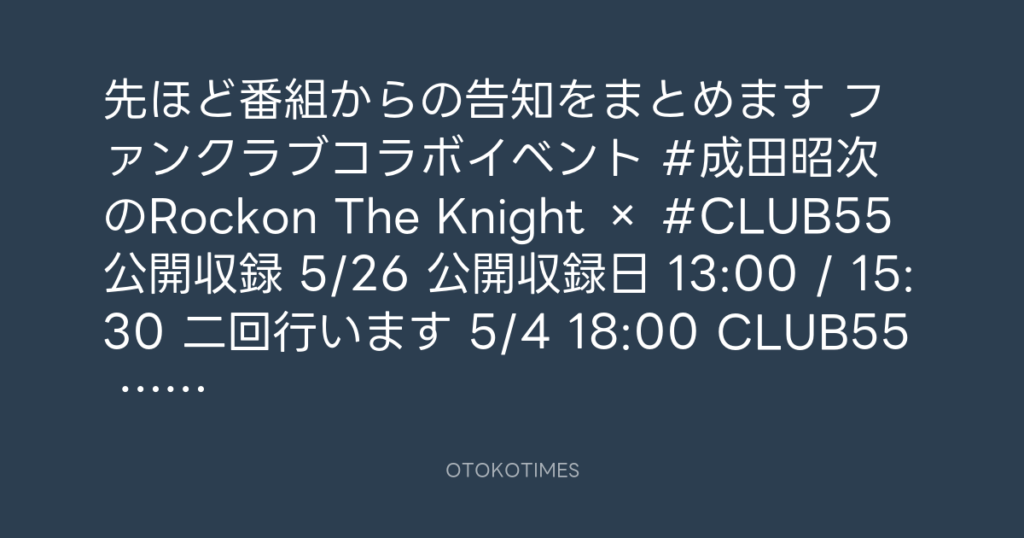 #CLUB55 × #ロックオンザナイト 公開収録 #成田昭次 https://x.com/RockonTheKnigh... -