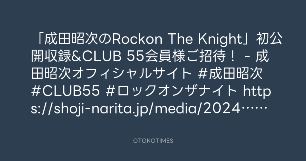 「成田昭次のRockon The Knight」初公開収録&CLUB 55会員様ご招待! - 成田昭... -