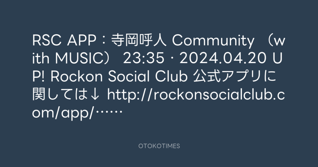 🤘RSC APP:寺岡呼人 Community (with MUSIC) 23:35・2024.04.20 UP! Rockon Soc... -