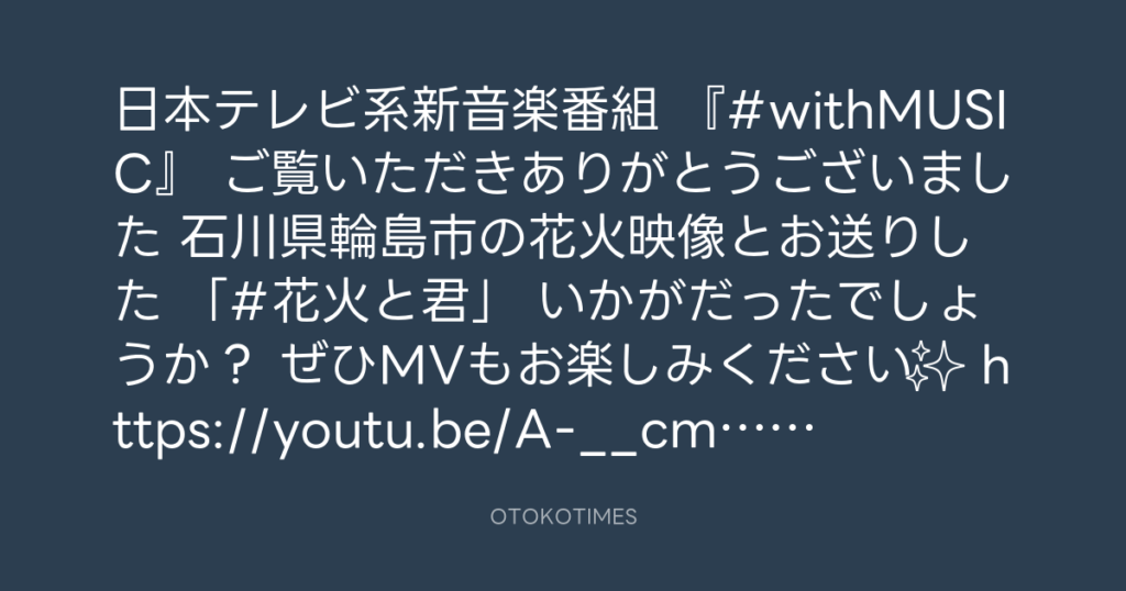 日本テレビ系新音楽番組 『#withMUSIC』 ご覧いただきありがとうございました🎶 石... -