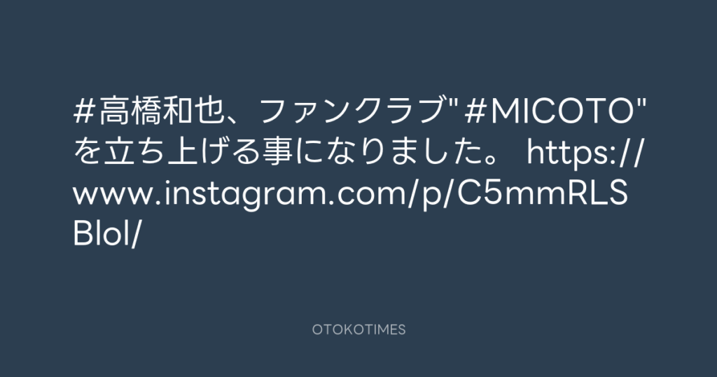 #高橋和也、ファンクラブ"#MICOTO"を立ち上げる事になりました。 https://www.inst... -