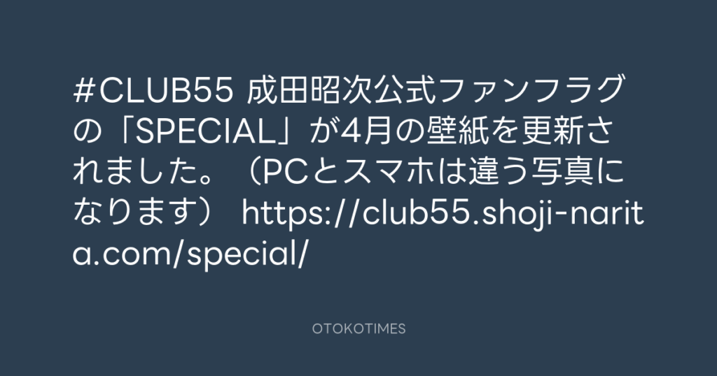 #CLUB55 成田昭次公式ファンフラグの「SPECIAL」が4月の壁紙を更新されました。(P... -