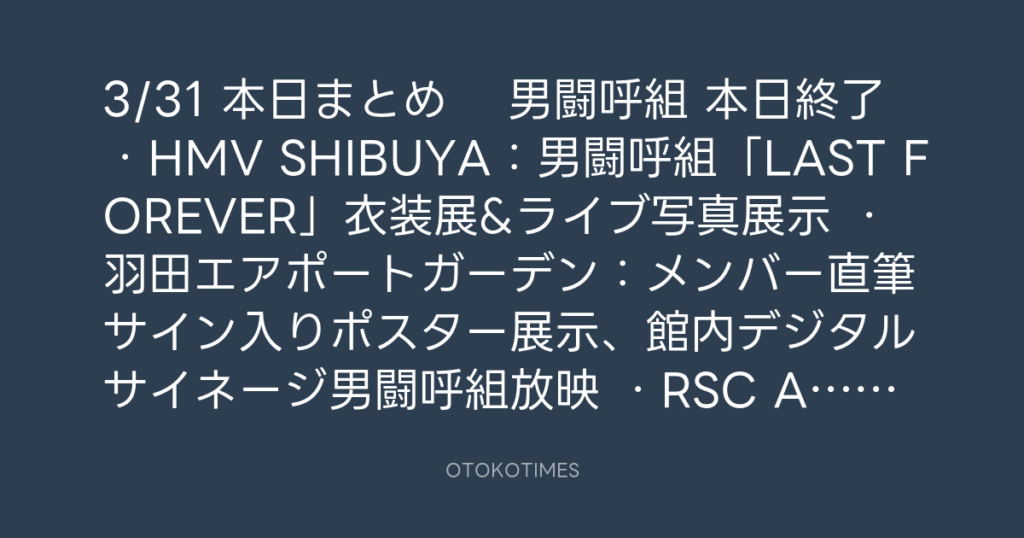 3/31 本日まとめ 😎😏🤠🤓 男闘呼組 本日終了 ・HMV SHIBUYA:男闘呼組「LAST FOR... -