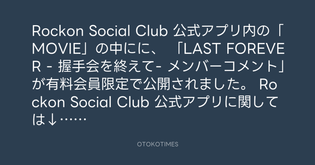 Rockon Social Club 公式アプリ内の「MOVIE」の中にに、 「LAST FOREVER - 握手会... -