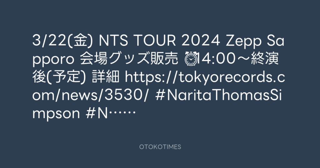 🗓3/22(金) NTS TOUR 2024🎸 📍Zepp Sapporo 会場グッズ販売🛍 ⏰14:00〜終演後(予定... -