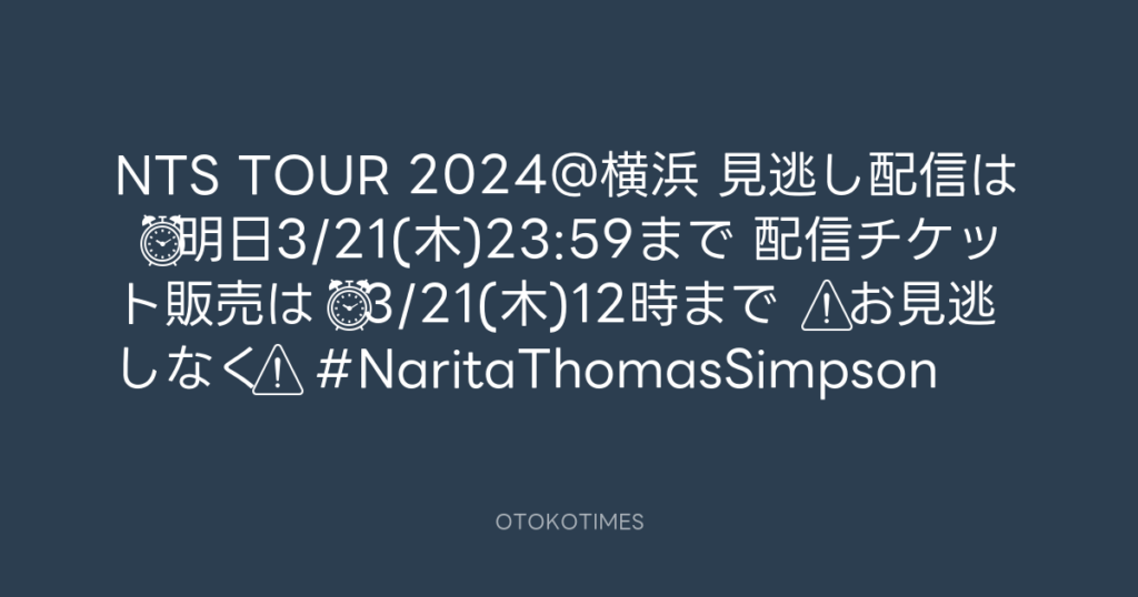 NTS TOUR 2024@横浜 📱見逃し配信は ⏰明日3/21(木)23:59まで 🎫配信チケット販売... -