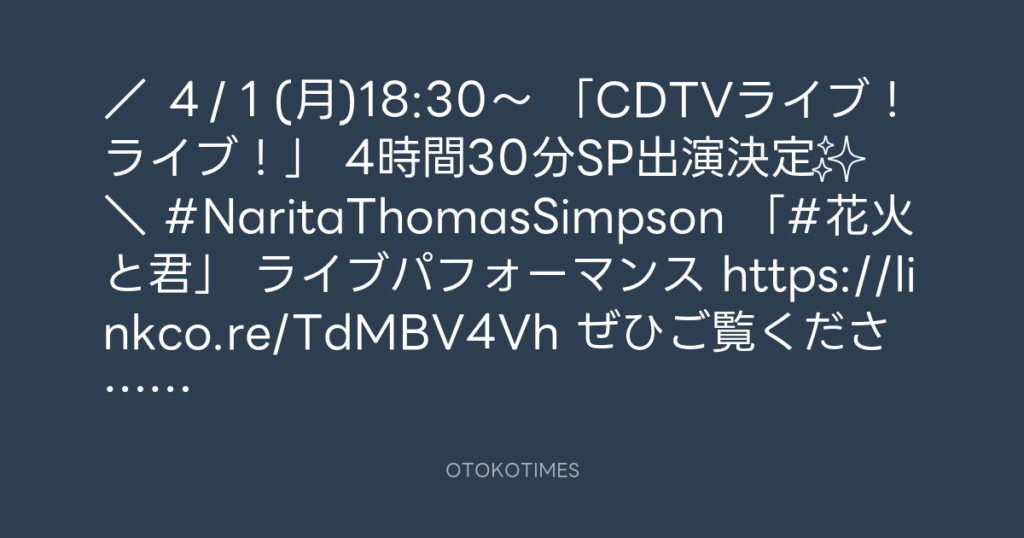 / 📢4/1(月)18:30〜 「CDTVライブ!ライブ!」 4時間30分SP出演決定✨ \ #Nari... -