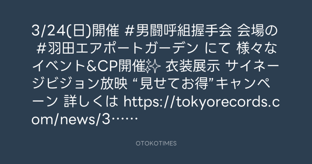 OTOKOTIMES @OtokoTimes1988 – 12:00・2024年3月19日