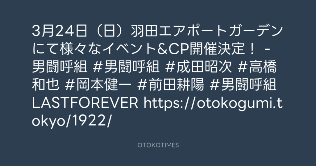 3月24日(日)羽田エアポートガーデンにて様々なイベント&CP開催決定! - 男闘... -