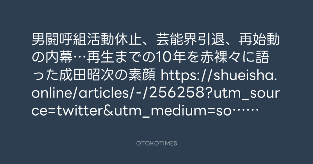 男闘呼組活動休止、芸能界引退、再始動の内幕…再生までの10年を赤裸々に語った成田... -