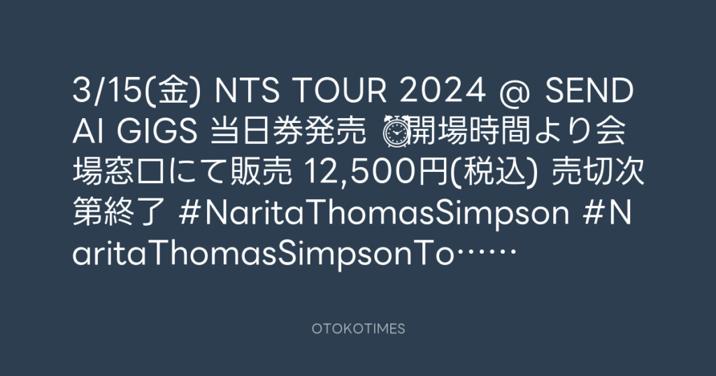 📢3/15(金) NTS TOUR 2024 @ SENDAI GIGS 当日券発売🎫 ⏰開場時間より会場窓口に... -