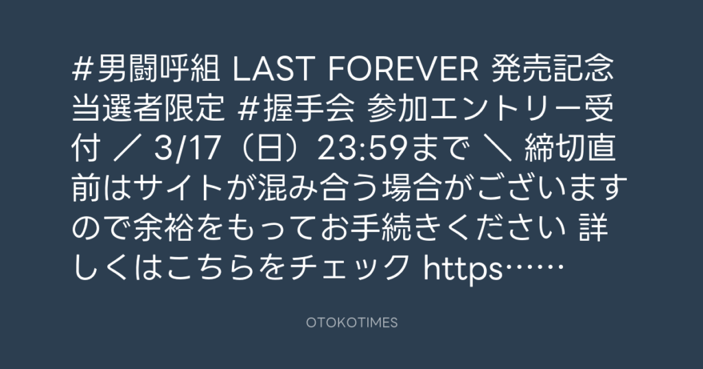 #男闘呼組 LAST FOREVER 発売記念 当選者限定 #握手会🤝 参加エントリー受付 / 3/... -