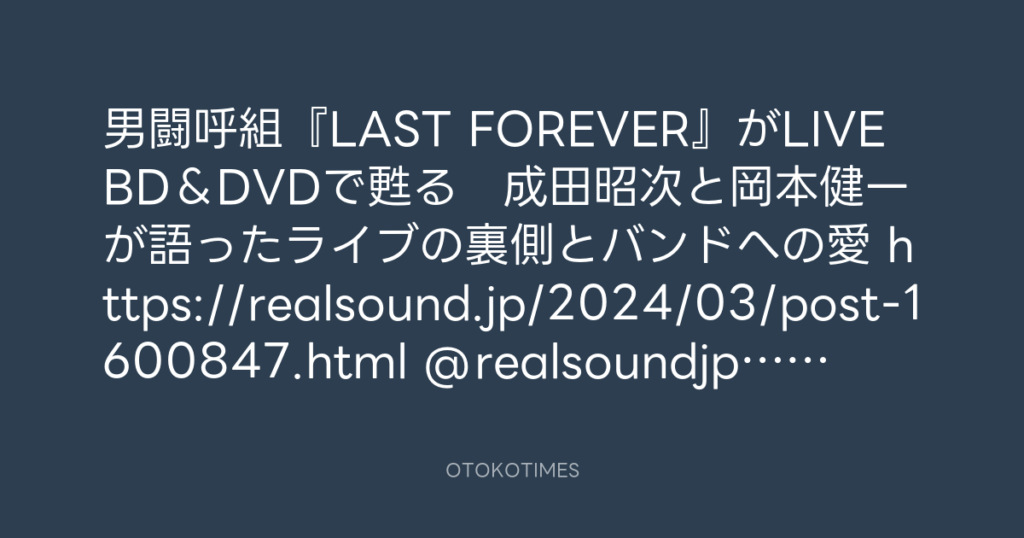 OTOKOTIMES @OtokoTimes1988 – 7:52・2024年3月15日