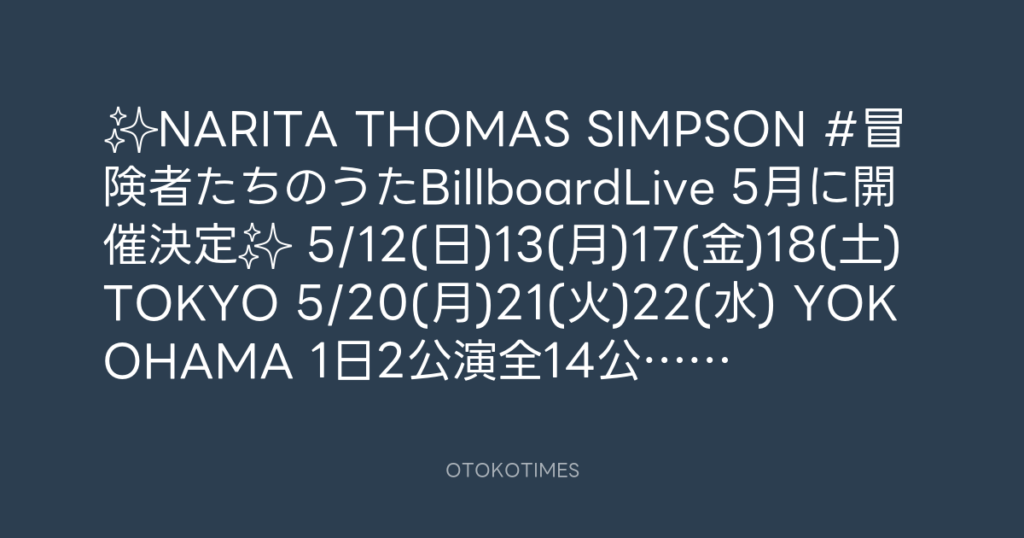 ✨NARITA THOMAS SIMPSON #冒険者たちのうたBillboardLive 5月に開催決定✨ 🗓5/12(... -