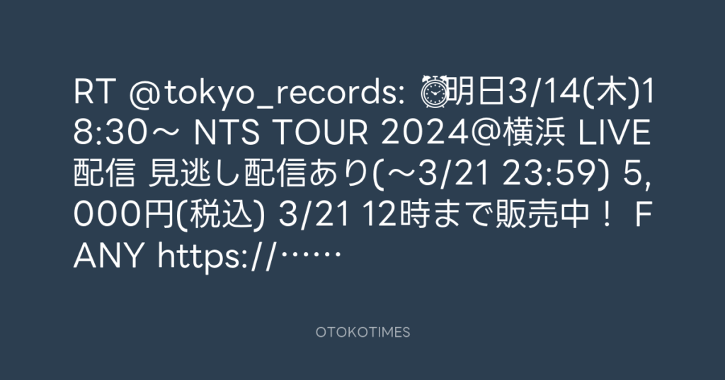 RT @tokyo_records: ⏰明日3/14(木)18:30〜 NTS TOUR 2024@横浜🎸 LIVE配信📡 📌... -