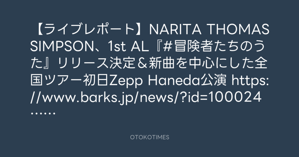【ライブレポート】NARITA THOMAS SIMPSON、1st AL『#冒険者たちのうた』リリース... -