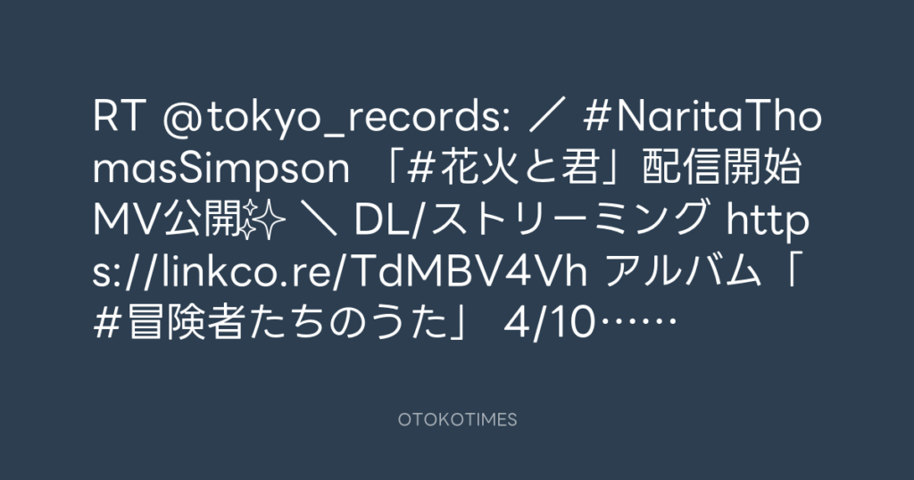 RT @tokyo_records: / #NaritaThomasSimpson 「#花火と君」配信開始🎇 MV公開✨ ... -