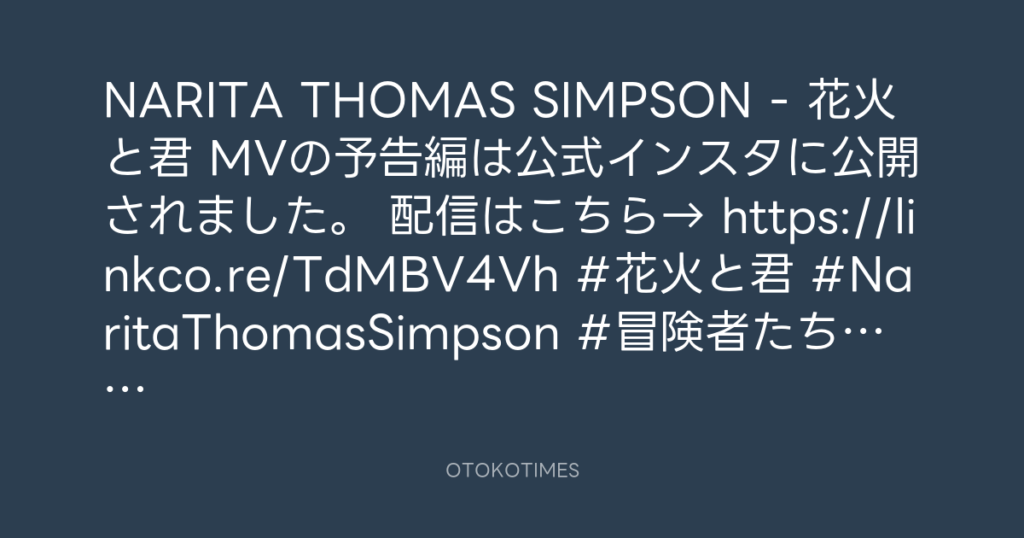NARITA THOMAS SIMPSON - 花火と君 MVの予告編は公式インスタに公開されました。 ... -