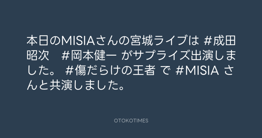 本日のMISIAさんの宮城ライブは #成田昭次 #岡本健一 がサプライズ出演しました。... -