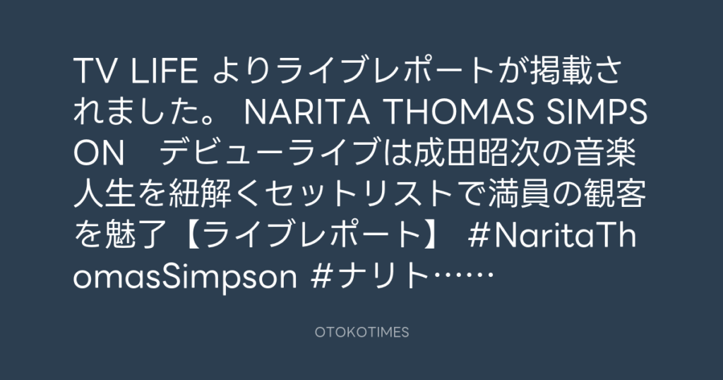 TV LIFE よりライブレポートが掲載されました。 NARITA THOMAS SIMPSON デビュー... -