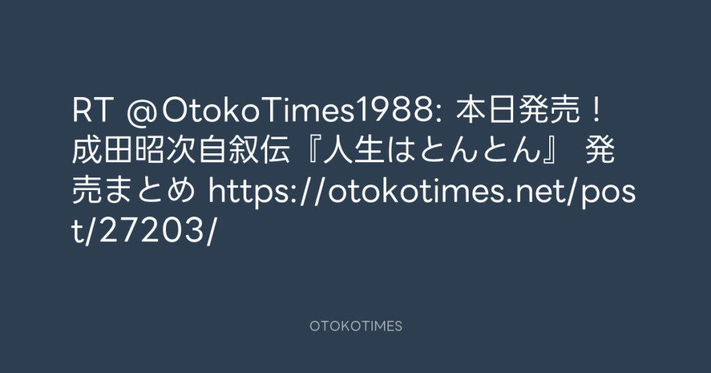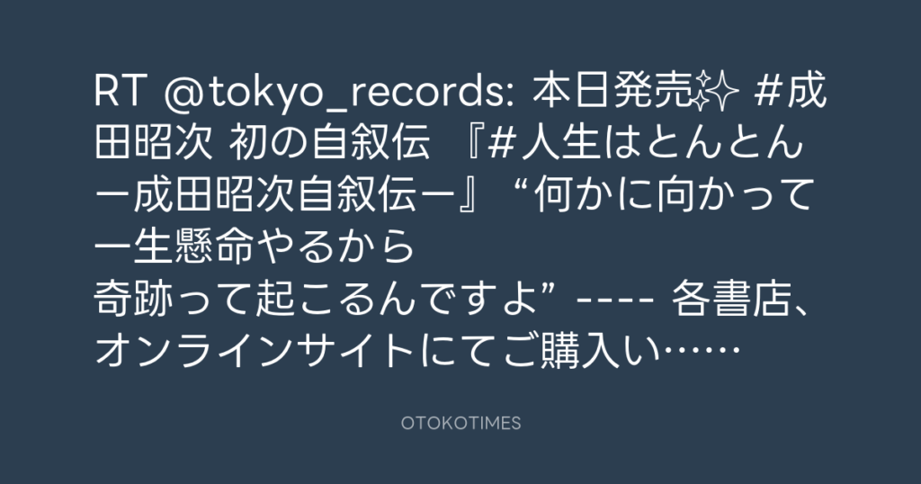 RT @OtokoTimes1988: 本日発売! 成田昭次自叙伝『人生はとんとん』 発売まとめ ht... -