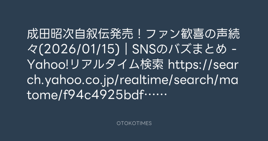 成田昭次自叙伝発売!ファン歓喜の声続々(2026/01/15)|SNSのバズまとめ - Yahoo!... -
