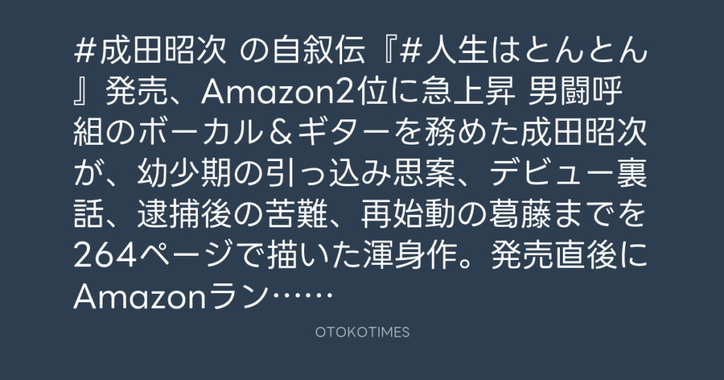 #成田昭次 の自叙伝『#人生はとんとん』発売、Amazon2位に急上昇 男闘呼組のボーカ... -