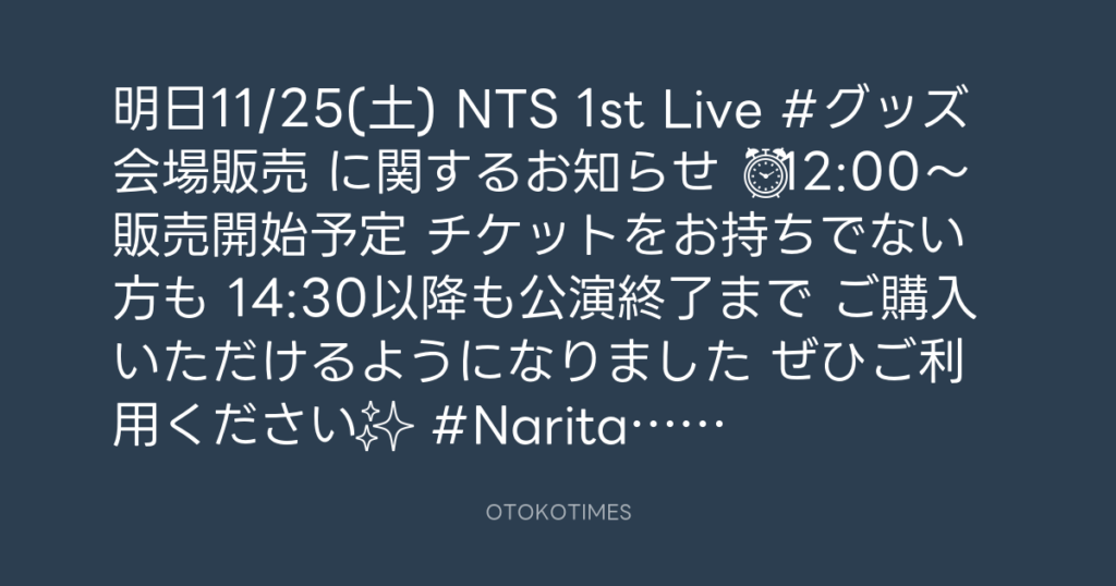📢明日11/25(土) NTS 1st Live #グッズ会場販売 に関するお知らせ ⏰12:00〜販売開... -