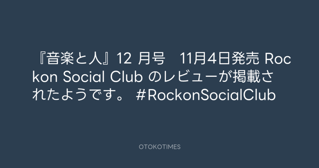 『音楽と人』12 月号 11月4日発売 Rockon Social Club のレビューが掲載されたよ...