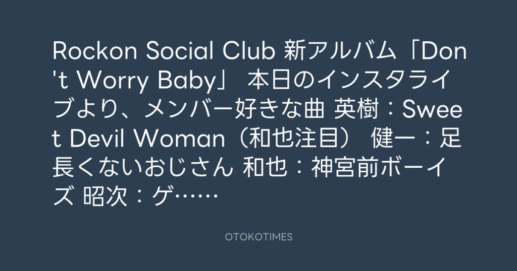 Rockon Social Club 新アルバム「Don't Worry Baby」 本日のインスタライブより、... -