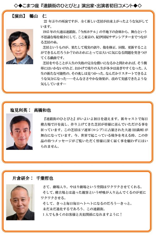 『#連鎖街のひとびと』🍎 初日を迎えた演出の #鵜山仁 さん、 ご出演の #高橋和也 ... -