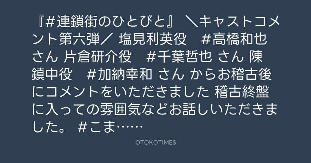 『#連鎖街のひとびと』🍎 \キャストコメント第六弾/ 塩見利英役 #高橋和也 さん... -