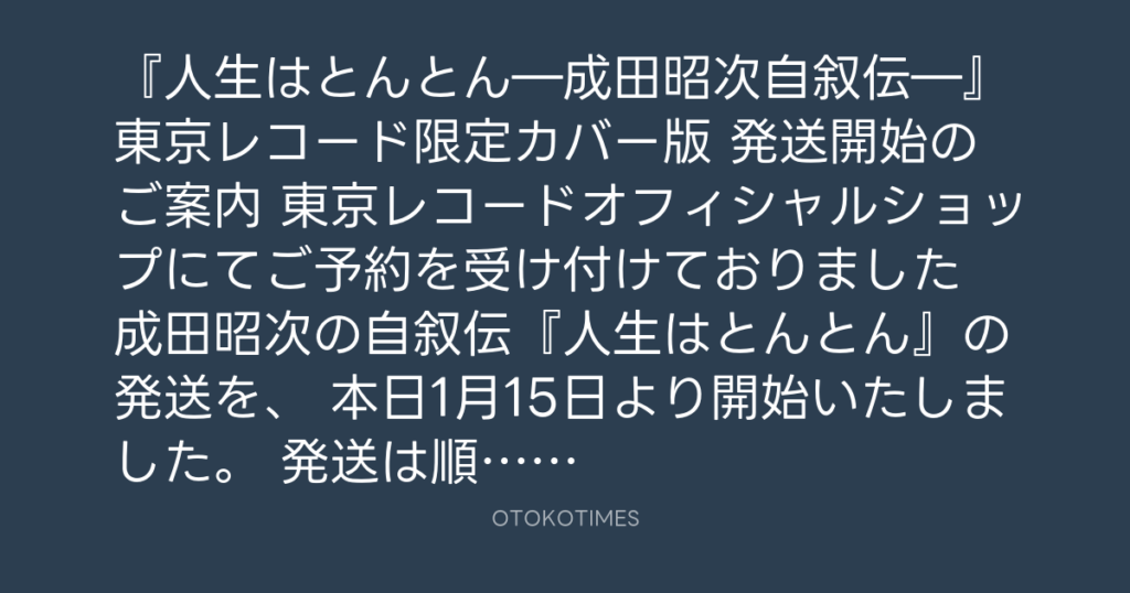 『人生はとんとん―成田昭次自叙伝―』 東京レコード限定カバー版 発送開始のご案内 ... -