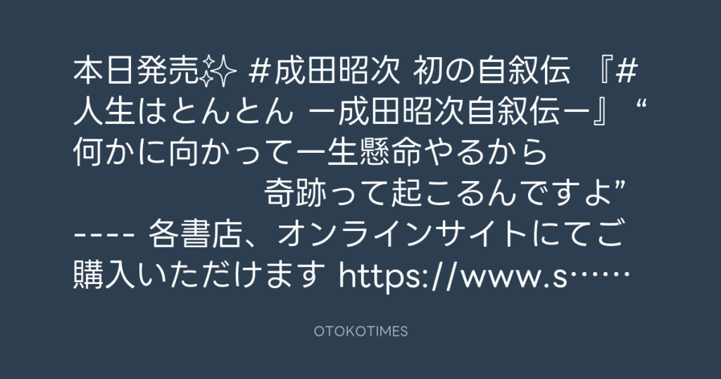 📢本日発売✨ #成田昭次 初の自叙伝 『#人生はとんとん ー成田昭次自叙伝ー』 “何... -