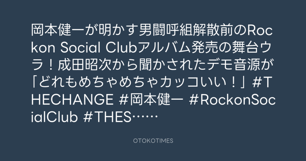 岡本健一が明かす男闘呼組解散前のRockon Social Clubアルバム発売の舞台ウラ!成... -