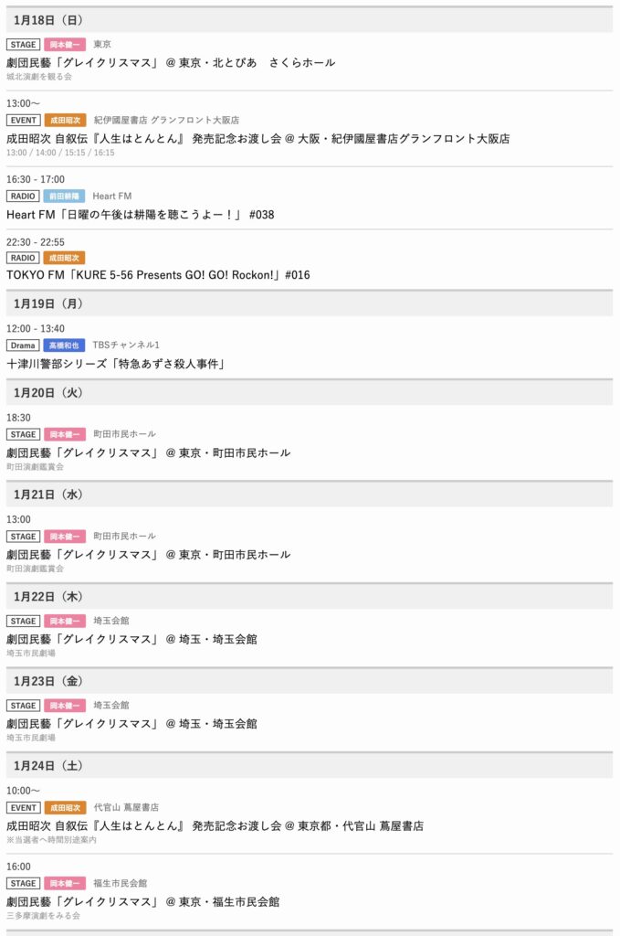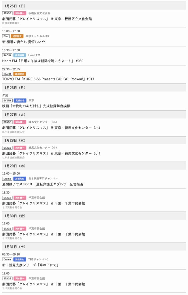1/25〜1/31までのスケジュールをお届けします。 ※現時点で確認可能な範囲のみ。 (... -