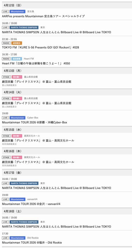 4/12〜4/18までのスケジュールをお届けします。 ※現時点で確認可能な範囲のみ。 (... -