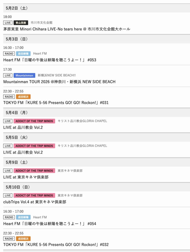 5月までのスケジュールをお届けします。 ※現時点で確認可能な範囲のみ。 (2026/1/... -