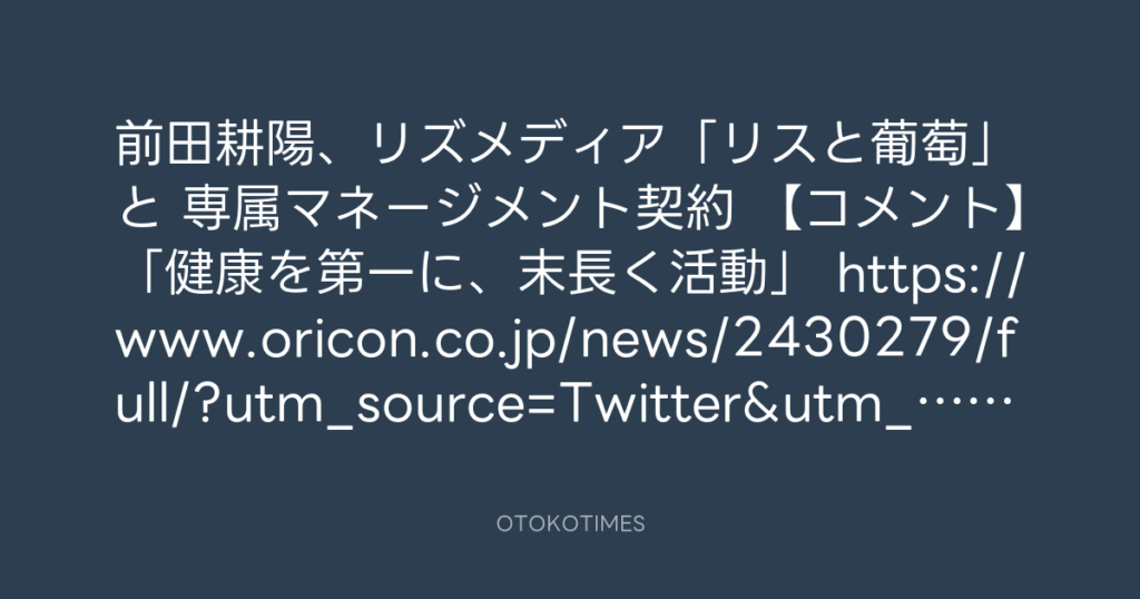 前田耕陽、リズメディア「リスと葡萄」と 専属マネージメント契約 【コメント】「... -