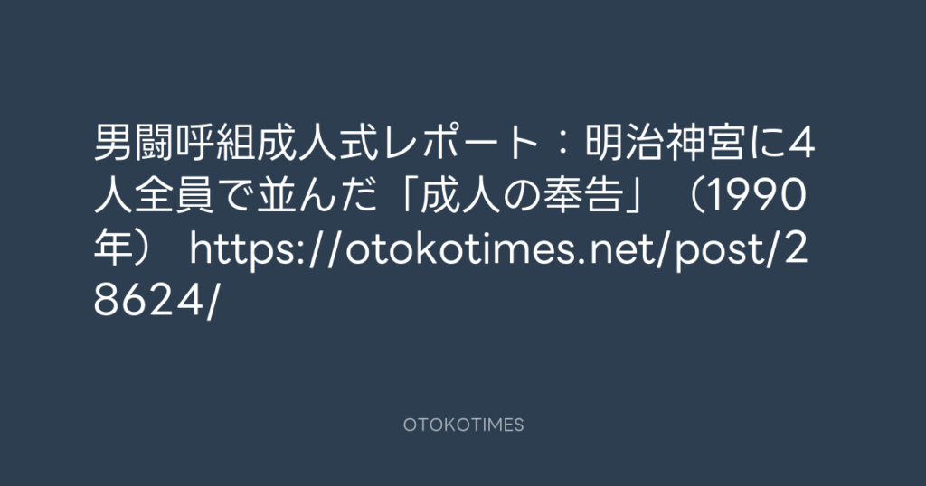 男闘呼組成人式レポート:明治神宮に4人全員で並んだ「成人の奉告」(1990年) htt... -